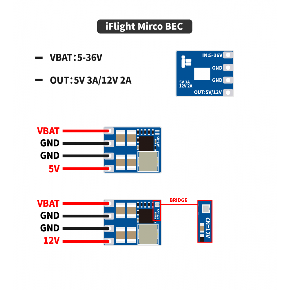 1x iFlight Micro 2-8S BEC – 5V/12V Output